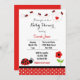 Convite de Chá de fraldas com tema de joaninha e fundo de pokadot.