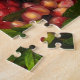 Esta quebra-cabeça esplêndida mostra sementes de romã vermelha, fatias de laranja e folhas de menta verde.