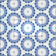 Círculos repetitivos de pontos azuis e círculos azuis-claros num padrão de desligamento repetitivo. Um quintal de algodão de 54 "