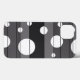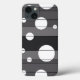 Esse design criado digitalmente consiste em seções de cinzas divididas por linhas que cortam os círculos de vários tamanhos espaçados em toda a design.