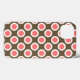 Pontos retrorreflectores com uma borda contrastante, baseado em um padrão estofado clássico, do século do Médio Moderno - pontos cor-de-rosa coral bordados em branco sobre um fundo tan esticado / pedra