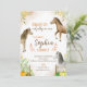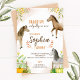Convite de aniversário por 3 adoráveis pôneis para uma festa de aniversário de criança. Este convite tem ilustrações de aquarelas, três belos cavalos, folhagem de outono e abóboras bonitinhas. Perfeito para uma festa de aniversário infantil no outono.