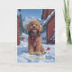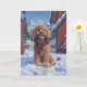 Este cartão de Natal bonito mostra um cão de vara sorridente sentado na neve com uma coroa de Natal ao redor do pescoço. Você pode personalizar a saudação na frente e a mensagem dentro da placa de acordo com o seu gosto.