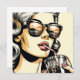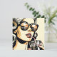 A pop de arte retro-bonito da bebendo dos quadrinhos bonito, com óculos de sol acesos, com um reflexo solar.