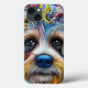 Uma vibrante peça de arte digital que retrata um Yorkshire Terrier num estilo de pop, usando padrões repetitivos e uma atitude lúdica