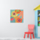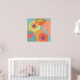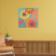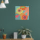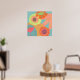 Flores no aqua em laranja, amarelo e tangerina. Esta pop é boa para espaços residenciais e comerciais.