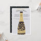 Os convites para janto de ensaio festivo apresentam uma garrafa de champanhe enfeitada com os nomes dos casais e a data do evento. Personalize com seu ensaio de cerimônia de casamento e detalhes de celebração, flanqueando o pescoço da garrafa.