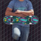 Adicione um toque gráfico ousado à sua viagem com este andar de skate com um padrão geométrico vibrante em roxo, turquesa e amarelo. Inspirada por pop e abstrato, este design é perfeito para os skatistas que adoram conselhos únicos, coloridos e chamativos.