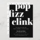 Convites de festas modernos e minimalistas de Ano Novo apresentam estilo preto-e-branco-chico com "pop baru clink" em letras retrorreflectoras brancas de tamanho excessivo. Personalize com seus detalhes de celebração da Véspera de ano novo abaixo. Convites invertem-se para um padrão de estrelas coloridas a preto a branco.