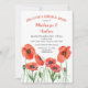 Um adorável brunch floral do ensaio de casamentos florais de aquarela ou um convite jante com cor laranja e papoila vermelha em um fundo branco.