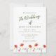 O convite de casamento floral plano moderno e minimalista apresenta papoilas aquáticas na fronteira inferior com texto personalizável (mostrado em tinta verde da floresta, que pode ser alterada). O verso do convite é um verde-eucalipto claro, que também pode ser alterado para qualquer cor que você escolher. Disponível no formato impressão e de download digital.