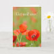 Cartão comemorativo com flores vermelhas vibrantes em um cheio verde de papoilas. Tem uma forte emoção de felicidade, primavera e verão. Pode ser usado para mostrar simpatia e tem o texto: "Muito em breve". A chave é personalizável.