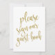 Um elegante sinal de casamento de ponta, apresenta o texto "por favor, assine nosso livro de visitas" em uma fonte de script extrovertida, a textura brilhante adiciona um toque festivo e glamoroso. A cor do fundo pode ser personalizada de acordo com suas necessidades e preferências, por favor entre em contato comigo se você tiver algum pedido especial.