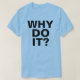 Por que? T-shirt do movimento que caracteriza o slogan "PORQUE O FAÇA?". em letras pretas. As letras e a cor do fundo são customizáveis.
