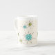 Este teste padrão atômico icónico da caneca de China de osso de Starbursts caracteriza starbursts atômicos icónicos. Isso é direito! A velha escola, o fundo colorido de creme com salpicos do ouro é o contexto perfeito para a turquesa vibrante, o aipo reconfortante, e os círculos coloridos do verde kitschy da pera. Os pontos da cor são colocados esporàdica em vários tamanhos com cobertura de linhas dadas forma V pretas para formar os starbursts da modificação sputnik. Denominado após os anos 50 tornam côncavo o teste padrão, este design inspirado retro têm tudo que você precisa de ser verdadeiramente meio século moderno.