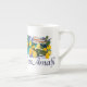 Aprecie uma chávena de café ou um chá nesta caneca da porcelana de osso decorada com as cores de Amalfi com o logotipo do Web site baseado costa Ciao Amalfi de Amalfi.