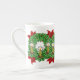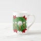 As velas de incandescência brilhantes iluminam acima três grinaldas da folha do azevinho moldadas nas poinsétias. Suas escolhas de toda a caneca caberão este design com pouco ajuste ao tamanho de cada imagem para encher canecas enormes, fosco ou canecas cerâmicas regulares. Este está na porcelana de osso. Cada imagem adicionada separada de modo que você possa reposicionar, muda o tamanho e ou a configuração. As cores do fundo estão disponíveis ou você pode adicionar um fundo como uma imagem que você projete você mesmo. O excelente para recolhimentos da família durante os feriados ou dá como presentes no escritório. As canecas enormes são grandes e espaçosas assim que você pode enchê-las com os presentes, os doces ou o café, as amostras do chá e o envoltório no celofane com um arco grande.
