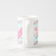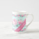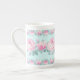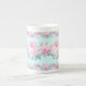 Caneca personalizada. estilo chique, presente floral para ela. Rosas cor-de-rosa sobre fundo azul aqua, design romântico. Adicione seu nome ou qualquer texto.