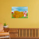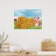 Um porco rosa feliz numa fazenda com uma pilha de feno. Esta design parece realmente eficaz nesta Poster