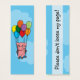 Apresentando uma ilustração digital de porco rosa usando um punhado de balões multicoloridos para voar alto no céu azul nublado.