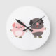 Porcos bonitos de desenho em um relógio de parede