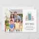 Compartilhe seu novo endereço com amigos e família, junto com uma foto da sua nova e bonita casa, com nossos anúncios de na moda. O design apresenta a sua família ou fotografia de casa favorita juntamente com o seu anúncio personalizado (mostrado com "nos movemos"), os seus nomes e o seu novo endereço, acompanhados de uma ilustração esboçada de uma porta frontal azul aqua.