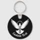Pomba voadora com ícone de chave simples. Cor de fundo personalizada. Texto personalizado de ambos os lados.