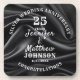 Texto editável com nomes pessoais data de aniversário de casamento, em tons pretos e brancos prateados; fundo preto de seda. Um presente elegante e na moda na comemoração de um vigésimo quinto aniversário de casamento.
