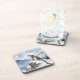 A pretty wildlife coaster with an illustration of a majestic snow leopard perched on a craggy, snow-covered peak, gazing out at a vast, frozen mountain range.