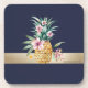 Abacaxi floral e listras elegantes em fundo azul com seu nome.