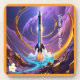 Este Design retrata o lançamento de um foguete através da atmosfera, traçando seu caminho com cores vibrantes e destaques de ouros. O design simboliza o poder da gravidade e o brilhantismo da exploração humana, misturando energia e elegância em movimento. "A Imagem Original foi gerada pelo Meta AI. A IA gerou trabalho de arte. Licenciado sob CC BY-SA 4.0.