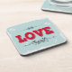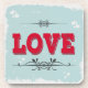 Ilustração de amor com decoração floral e cardíaca sobre fundo azul em quadro de resmungão