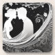 Um momento roubado, congelado ao contrário do branco e do preto - duas silhuetas pegas num doce beijo. Suas formas se entrelaçam, um sussurro de intimidade e a magia eterno do afeto. Esta simples, mas evocativa, design evoca um senso de romance lúdico, o entusiasmo de um primeiro amor, e as promessas não faladas compartilhadas entre dois corações.