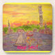 mostra um belo pôr do sol sobre a província com gabaritos e torre de peregrino da cor da água original com o slogan "pôr do sol da vila"!