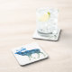 Esta design é o contorno de um alce com um gradiente de cor azul a bege e e a silhueta de um dentro de árvore.