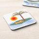 Beba coasters com meu design de vetor tropical de uma palmeira, toalha de praia, sol quente e ondas.