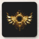Asas mecânicas brilhantes, com engrenagens e faixa redonda de latão. Steampunk