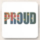 Um texto patriótico baseado em design com a palavra PROUD feita em uma fonte gigante da bandeira australiana.