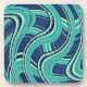 Seletiva, edição de fotos, criou esta arte gráfica em negrito, que exibe, linhas girando, que entrelaçam, em cores de; verde-lacrimogêneo, azul-meia-noite, preto e branco, que se assemelha a autoestradas Interestaduais.