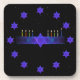Uma imagem fractal roxa e azul, com um Magen David (Estrela de David), no meio, como uma menorah Chanukkah. O motivo é repetido como limite de 12 estrelas. As velas estão acesas.