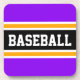 Este design desportivo, colorido, apresenta dentro de texto BASEBALL atlético, uma faixa preta larga realçada com pinstripes brancas e amarelas contra listras externas roxas brilhantes. O texto e as cores neste design podem ser personalizados.