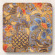 Grupo da cortiça-para trás 6, portas copos plásticas de alto brilho com uma imagem do azul fantástico, ouro, laranja, e batik do marrom. Guardanapo da porta copos e do pano e os de papel do papel de harmonização See. Veja a coleção inteira da porta copos da retirada de Bali na seção das portas copos de FOOD/BEV |.