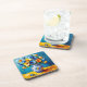 Beautiful coaster with a beautiful impasto style ai illustration of blue and orange flowers in a fancy vase.