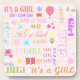Uma bela composição feita de várias fontes coloridas e pequenos elementos para dar boas vindas a uma nova menina.