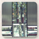 Um design moderno, masculino, com árvores de pássaros vistas por meio de vidro biselado em fundo metálico, listrado de prata. Olho elegante e coloração masculina. Em cores de prata e preto.