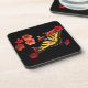 Este grupo requintado de portas copos da cortiça das belas artes caracteriza uma borboleta amarela e preta de Swallowtail do tigre em flores vermelhas e cor-de-rosa de Calibrachoa.