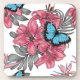 Buquê desenhado à mão de flores tropicais, palmeiras e borboletas