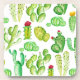 Um belo padrão repetitivo apresenta uma variedade de cactos de aquarela, de pera picante a saguaros.