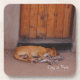 Cachorro no Rest Nature Foto impressões e presentes mostram uma bela fotografia de um cão bronzeado dormindo em frente a uma cabana de lama com uma porta laranja na África tirada por Kurt Keller à tarde enquanto estava em um safari africano. Quem ama animais, cachorros, fotografia da natureza e qualquer amante de filhotes apreciará esta fotografia tranquila de pãozinho-dormindo. Traga para casa um cachorrinho hoje.