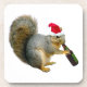 Um esquilo em um chapéu do papai noel bebe a cerveja.